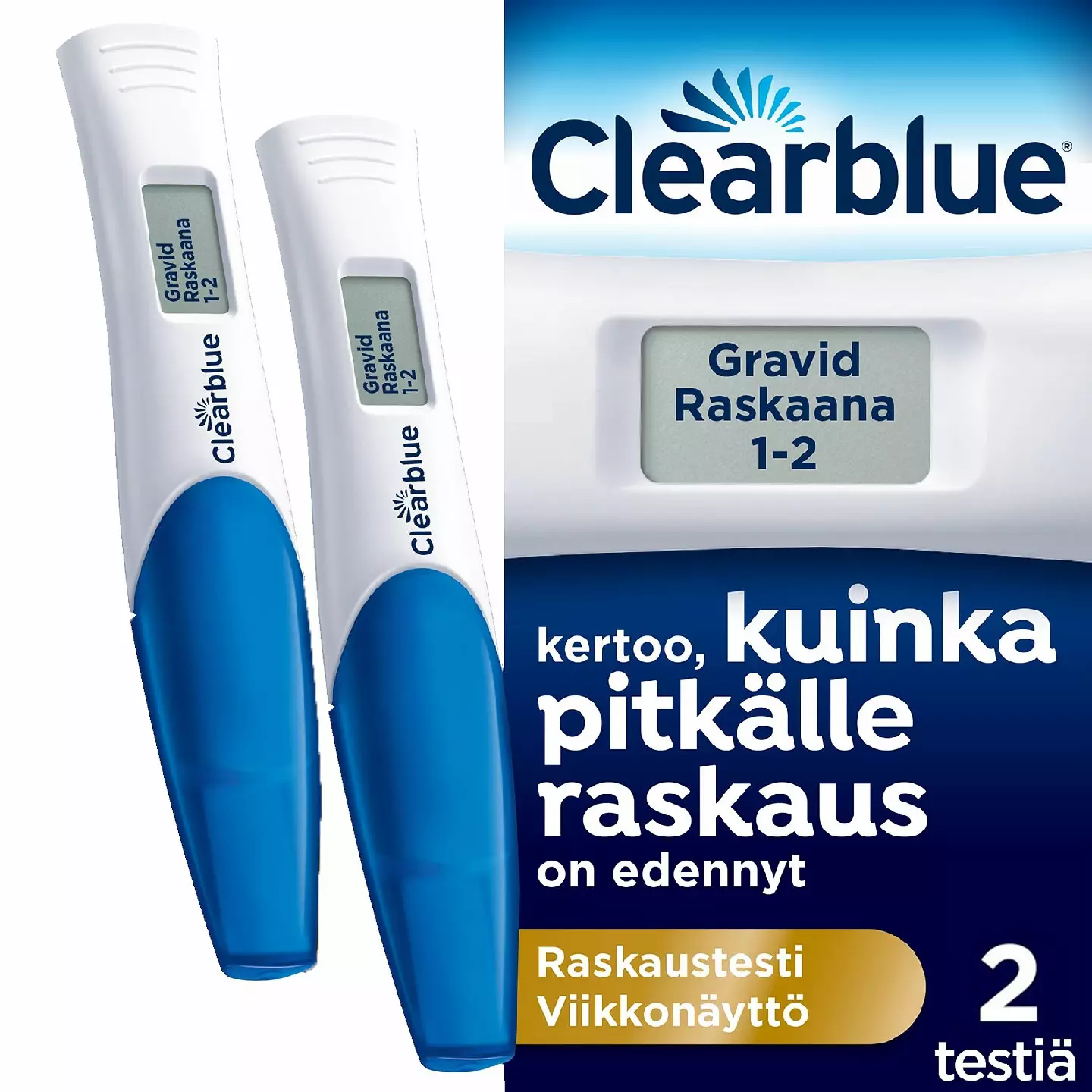 Clearblue DIGITAL -raskaustesti viikkonäytöllä (2 kpl pakkaus) antaa kaksinkertaisen vahvistuksen tulokselle. Testin digitaaliseen näyttöön tulee jo raskauden alkuvaiheessa testattaessa luotettava ja selkeä tulos 3 minuutissa, jotkut tulokset saattavat tulla jo minuutissa. Tulos pysyy näytössä noin 24 tunnin ajan."Raskaana, Gravid" tai " Ei raskaana, Inte Gravid", joten sinun ei tarvitse tulkita viivoja. Jos olet raskaana, testi ilmoittaa tuloksen lisäksi, kuinka monta viikkoa hedelmöitymisestä on. Tulos tulee näytölle suomeksi ja ruotsiksi.